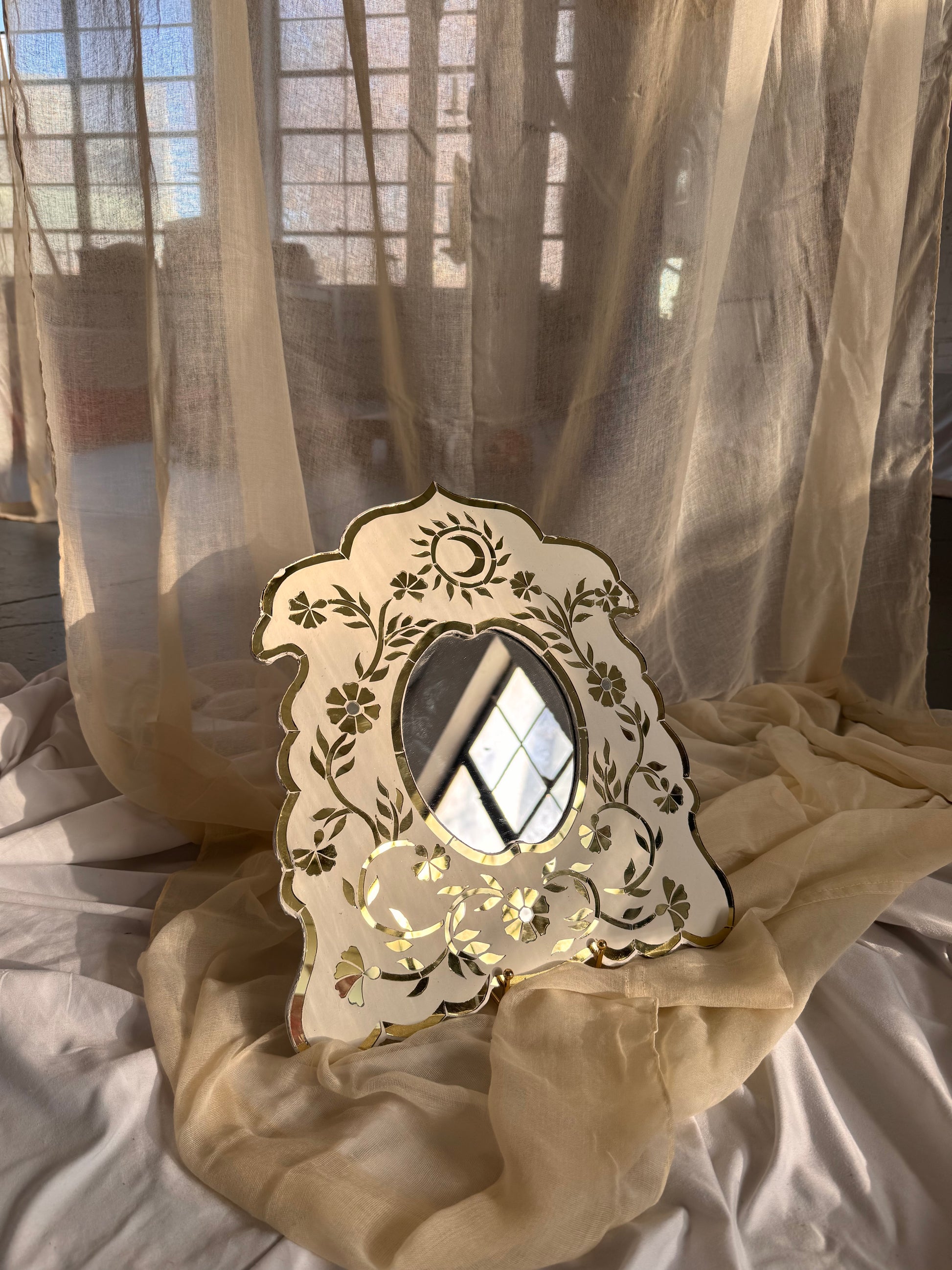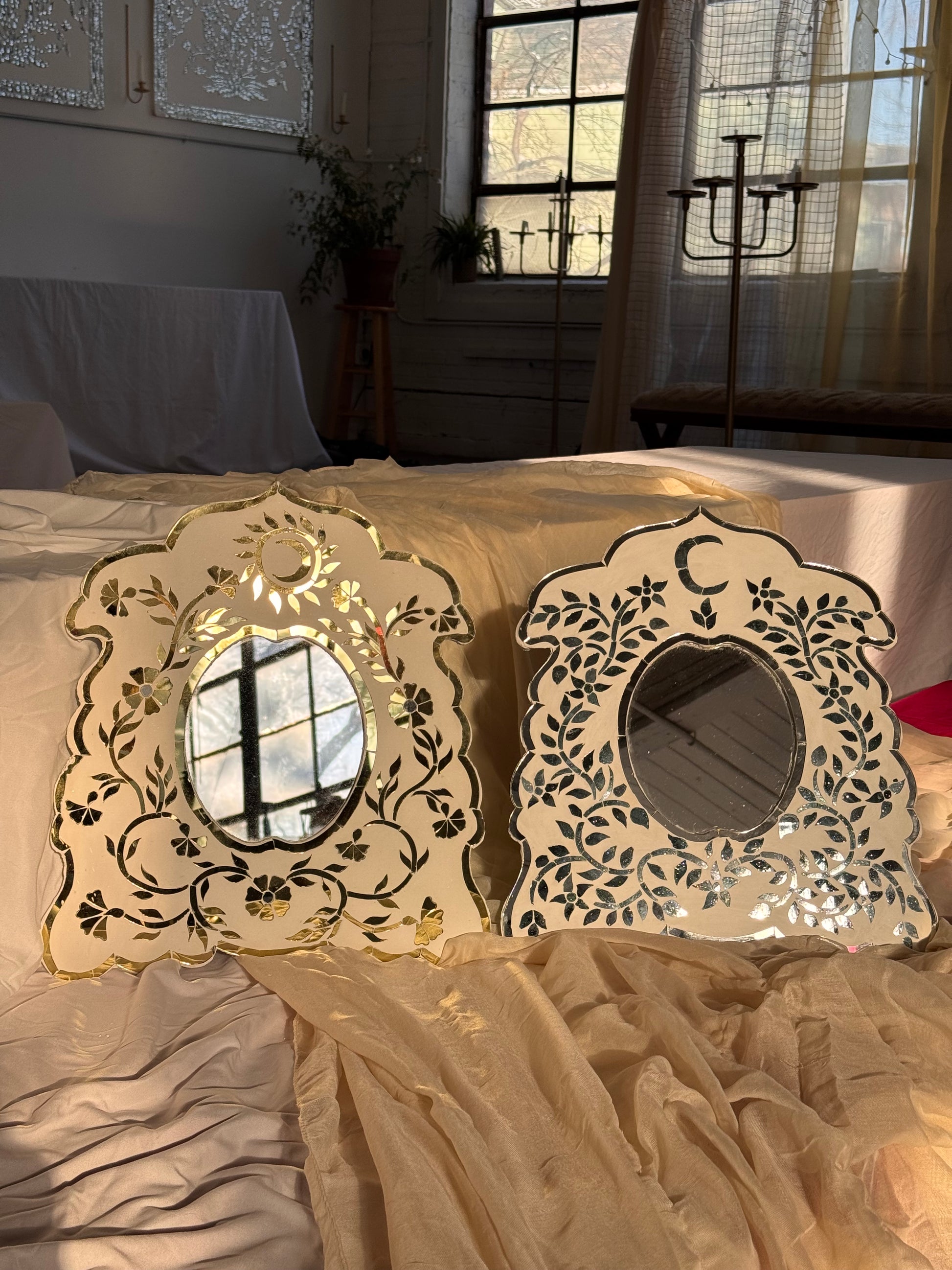 The Sun Mirror and Moon Mirror Set. Gold and Silver.