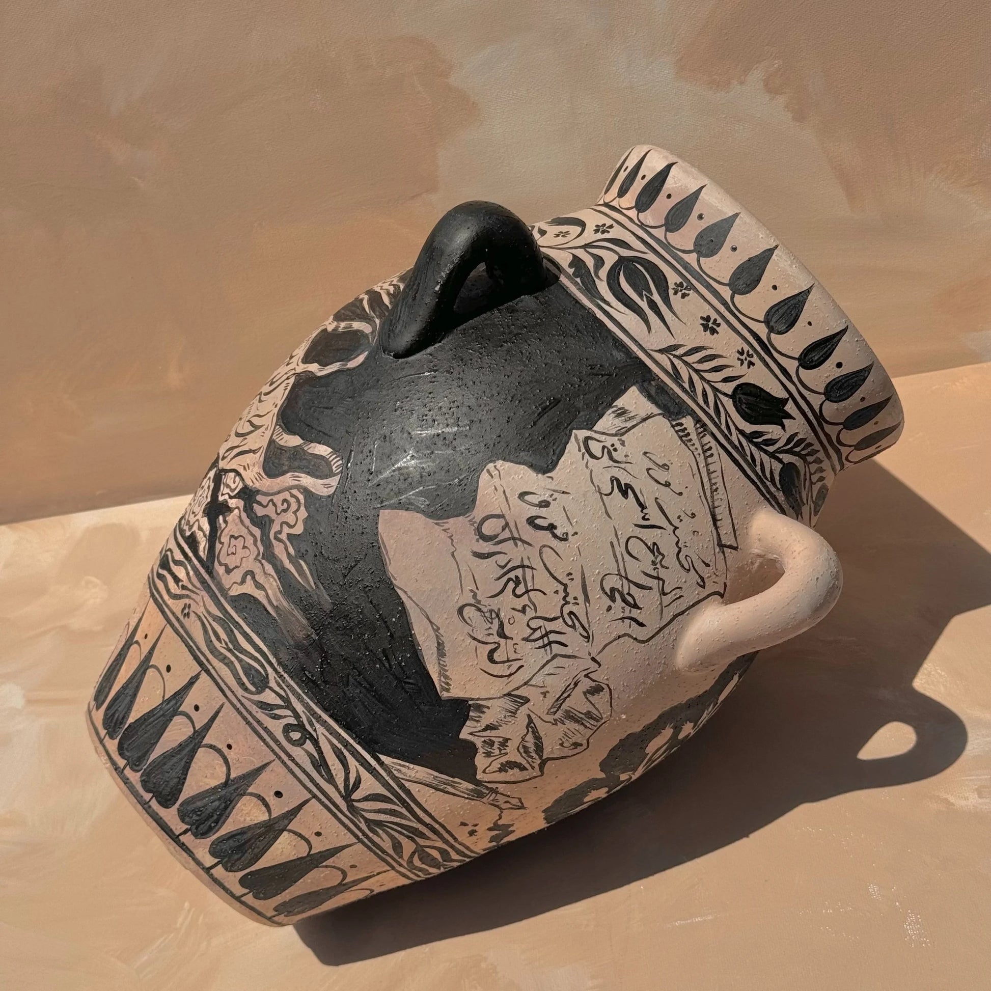 This bowl is hand painted with an excerpt of a poem written by the infamous Syrian romantic, Nizar Qabbani.