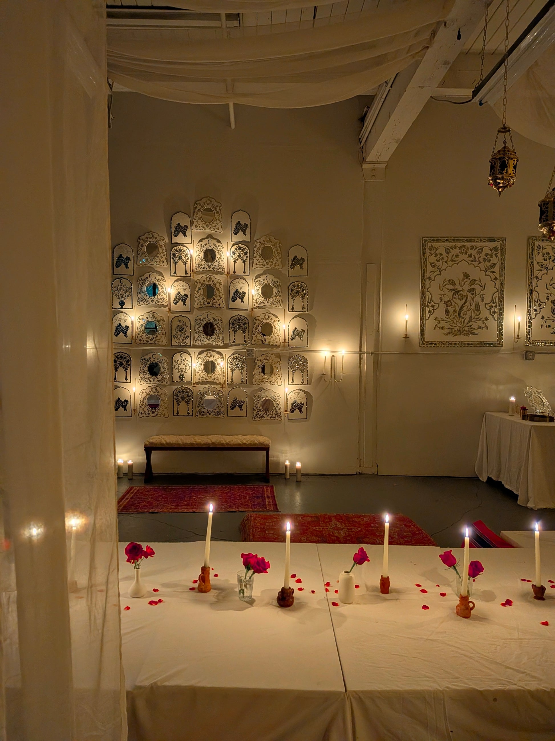 Join us for a candlelit evening of soulful qawwalis and flowing calligraphy. This class is an introduction to calligraphy painting. All levels are welcome! All materials, including mini vases, chai and light snacks provided.